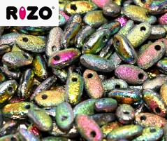Smaller than a dagger, longer than a drop, Rizo's are shaped like a grain of rice and are ideal for adding texture to bead weaving designs. The beads are 2.5 x 6mm with a hole at one end. Sold in a 2 1/2 inch tube containing approx. 10 grams (depending on the finish), and have about 140 beads in each tube.