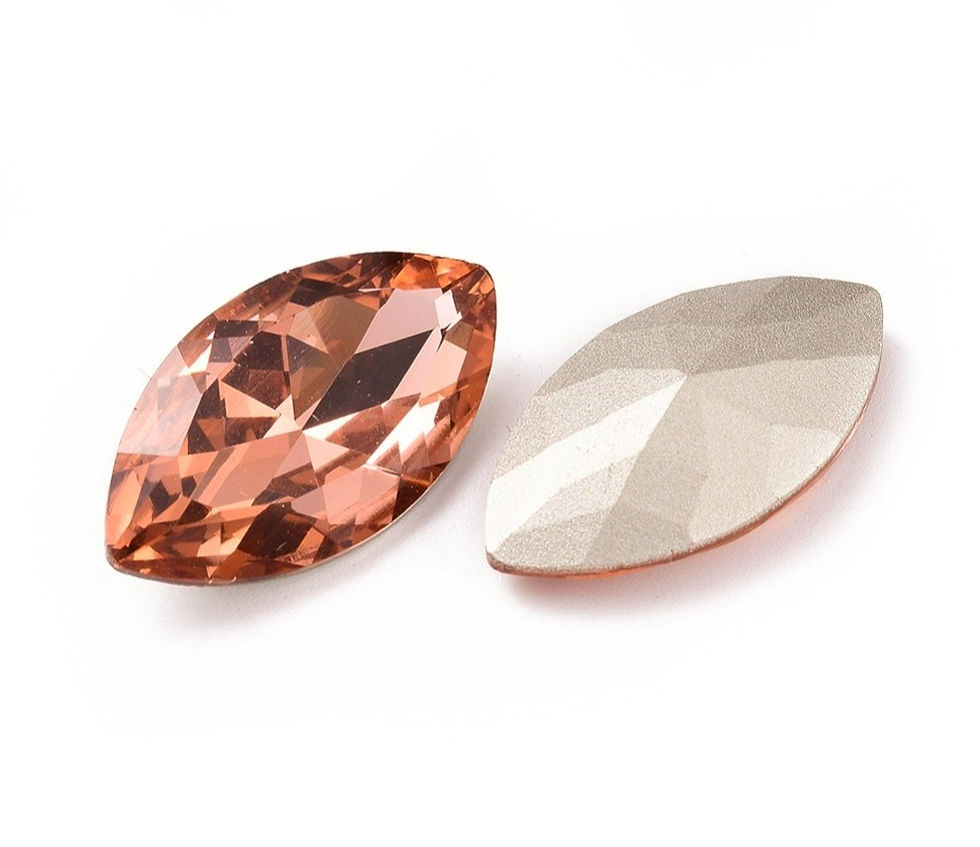 Pointed Back & Back Plated Glass machine cut navette (marquis) shaped crystals have no holes or settings, and are designed to be bezeled with wire or seed beads to create gorgeous projects. This will work with any design calling for a Swarovski 4228 shape.