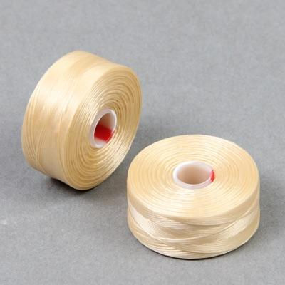 Size D C-lon beading thread is perfect for using with any size seed beads except the very smallest (15/0 or smaller when multiple passes are needed). Industry size Tex 45, each bobbin of nylon thread measures 1/2" x 1" and has approximately 78 yards (71m) per bobbin. CLBD is approximately .11mm in diameter with a breaking strength of 7 lbs. Made in the USA.
