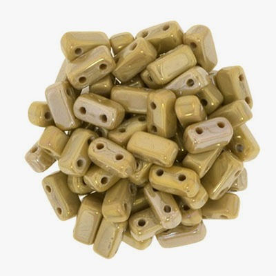 Czechmates’ 2-Hole Brick beads, made of pressed glass in the Czech Republic, are a great addition to the 2-hole bead collection. They are half the size of 2-Hole Tiles, 6mm long and 3mm wide, and are rectangular in shape. Their basic shape makes them great as a building block, easy to stack and arrange for beautiful designs and they work seamlessly with other Czechmate products.