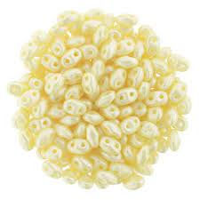 Made by Czech Republic glass manufacturer Matubo, Super Duo two-hole beads are 2.5x5.5mm with a hole size of .6mm which will fit up to a 22 gauge wire or thread. They are packaged in a plastic bag or